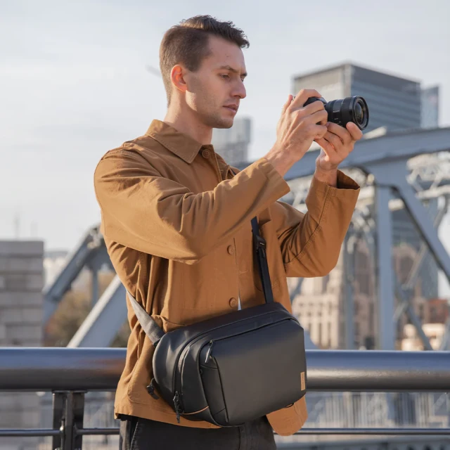 Die PGYTECH OneGo Solo V2 6List eine kompakte, stilvolle und praktische Tasche (Sling), die ausreichend Platz für eine Kamera und zwei Objektive bietet.