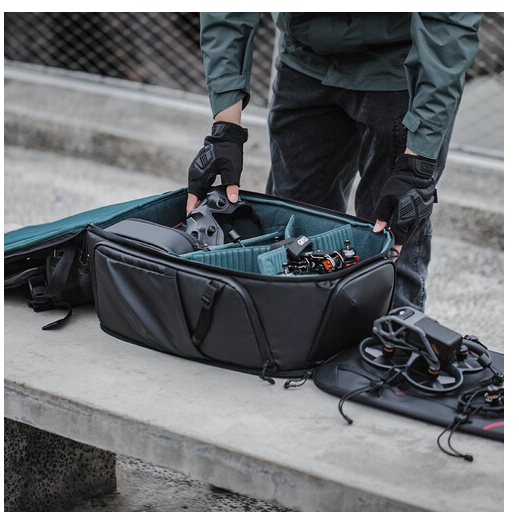 Der PGYTECH OneMo FPV-Drohnenrucksack wurde für 3–5-Zoll-FPV-Renn-Drohnen und Drohnen der DJI Mavic-Serie entwickelt und bietet maximalen Stauraum, einfachen Zugriff und bequemen Transport. Er verfügt über ein Z-Falt-Flachlegsystem, maßgeschneiderte Schaumstoffteiler, mehrere Zubehörtaschen, eine Laptop-/Tablet-Hülle und ergonomisch gepolsterte Gurte, wodurch er sich perfekt für Piloten eignet, die Drohnen, Fernbedienungen, Brillen, Akkus und Zubehör sicher und bequem transportieren müssen.