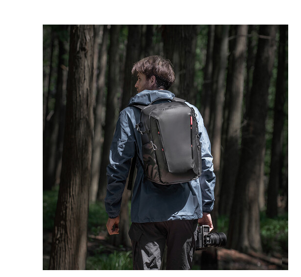 Der Rucksack verfügt über eine schnell zugängliche Seitentasche für den schnellen Zugriff auf wichtige Ausrüstung, Stativgurte, eine versteckte AirTag-Tasche und zusätzlichen Stauraum für Akkus. Ergonomische Designelemente wie gepolsterte Schultergurte, ein Hüftgurt und eine belüftete Rückwand entlasten bei längerem Tragen. Mehrere Tragegriffe an der Ober-, Seiten- und Rückseite erleichtern das Anheben und Handhaben und machen ihn ideal für Reisen, Dreharbeiten vor Ort oder den täglichen Weg zur Arbeit.