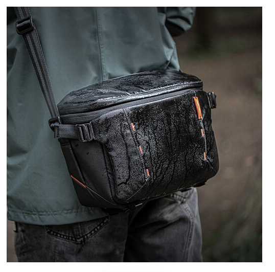 Der PGYTECH P-CB-161 OneMo Sling bietet intelligente Organisation und flexible Aufbewahrung in einem leichten grauen Camouflage-Design. Seine innovative Struktur und die große Öffnung oben ermöglichen ein schnelles und intuitives Packen und Zugreifen auf die Ausrüstung. Die Haupttasche bietet sicheren Platz für eine Kamera oder Drohne, die mittlere offene Tasche ist ideal für Stabilisatoren oder größere Gegenstände und die vordere Tasche organisiert kleines Zubehör und bietet Platz für eine 0,5-Liter-Wasserflasche.