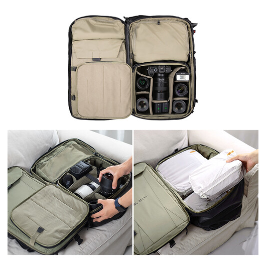 Der Rucksack wurde für ultimative Vielseitigkeit entwickelt und kann als traditioneller Rucksack, Reisetasche oder Umhängetasche mit abnehmbarem Hüftgurt und zwei oberen Trägern getragen werden. Er verfügt über ein gepolstertes Fach für Laptops bis zu 16 Zoll, einen flexiblen Trennwand mit Reißverschluss für übersichtliches Packen, zwei Seitentaschen für Zubehör und Gurte zur Befestigung eines optionalen Kameraeinsatzes oder Kleideraufbewahrungssets. Für zusätzlichen Komfort verfügt der Rucksack außerdem über eine versteckte AirTag-Tasche, Batterietaschen, einen faltbaren Deckel mit Schnallen und eine Ständer-/Stativhalterung. Die belüftete Rückwand aus Mesh und die druckentlastenden Schaumstoffgurte sorgen für Komfort bei langen Transporten, während die mitgelieferte Regenhülle Schutz bei nassen Wetterbedingungen bietet.