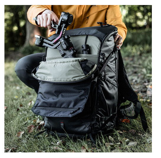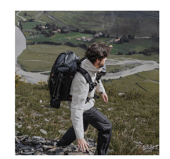 Das erweiterbare Frontfach bietet Platz für Gimbals, Stative oder sperriges Zubehör, während mehrere Innen- und Außentaschen Platz für technische Ausrüstung, persönliche Gegenstände und Outdoor-Utensilien bieten. Spezielle Befestigungspunkte ermöglichen die Sicherung von Trekkingstöcken, Eispickeln oder einer Campingmatte, wodurch sich der Rucksack ideal für Reisen, Wanderungen und Feldarbeit eignet.
