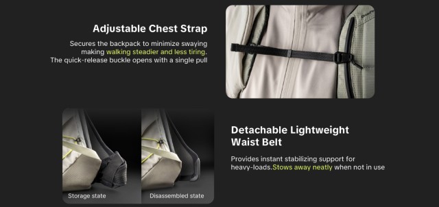 Sichert den Rucksack, um ein Schwanken zu minimieren, wodurch das Gehen stabiler und weniger anstrengend wird. Die Schnellverschlussschnalle lässt sich mit einem einzigen Zug öffnen.