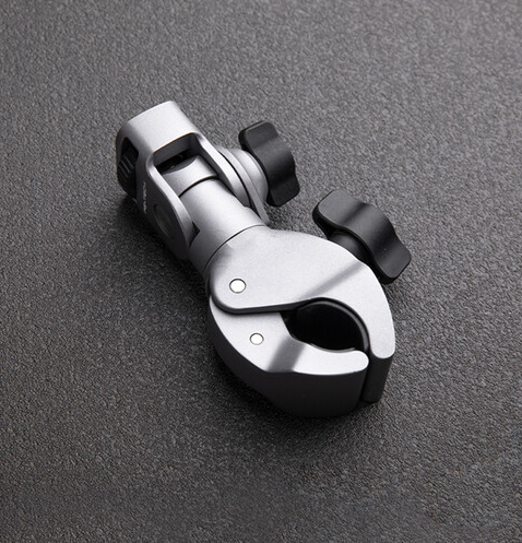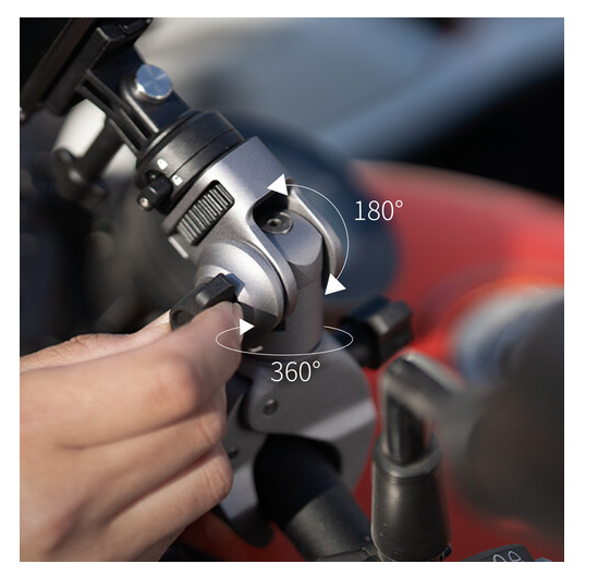 Die Halterung besteht aus einer hochfesten Aluminiumlegierung mit Gummi- und Polyamidkomponenten und bietet eine hervorragende Haltbarkeit bei gleichzeitig geringem Gewicht und guter Transportfähigkeit. Ihre patentierte Rosettenstruktur sorgt für erhöhte Sicherheit und Stabilität und ermöglicht eine reibungslose 360°-Drehung und 180°-Neigung für eine flexible Winkelpositionierung. Alle Einstellungen lassen sich mit einer einzigen Flügelmutter leicht arretieren.