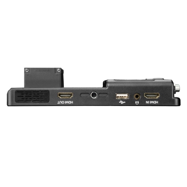 Darüber hinaus verfügt der LS7P über ein patentiertes Design, das eine eingebaute Sony NP-F-Akkuplatte für den Stromausgang enthält. Diese drehbare Batterieplatte kann sowohl horizontal als auch vertikal eingestellt werden. Sie bietet auch die Möglichkeit, einen drahtlosen Videoempfänger direkt an der Rückseite des LS7P anzuschließen und mit Strom zu versorgen (8 V/10 W). Dieses Design ermöglicht eine schlanke und minimalistische Einrichtung.