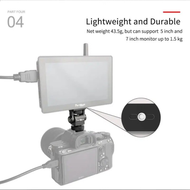 Nettogewicht 43,5 g, kann aber 5-Zoll- und 7-Zoll-Monitore bis zu 1,5 kg tragen (maximale Nutzlast: 3 Pfund und 4,9109 Unzen)