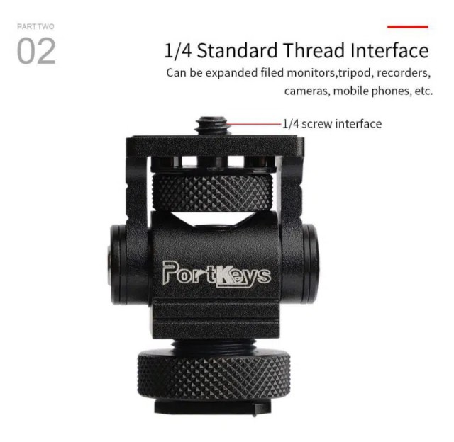 Mit der Standard 1/4" Gewindeschnittstelle können Monitore, Stative, Aufnahmegeräte, Kameras, Mobiltelefone, etc. angeschlossen werden.