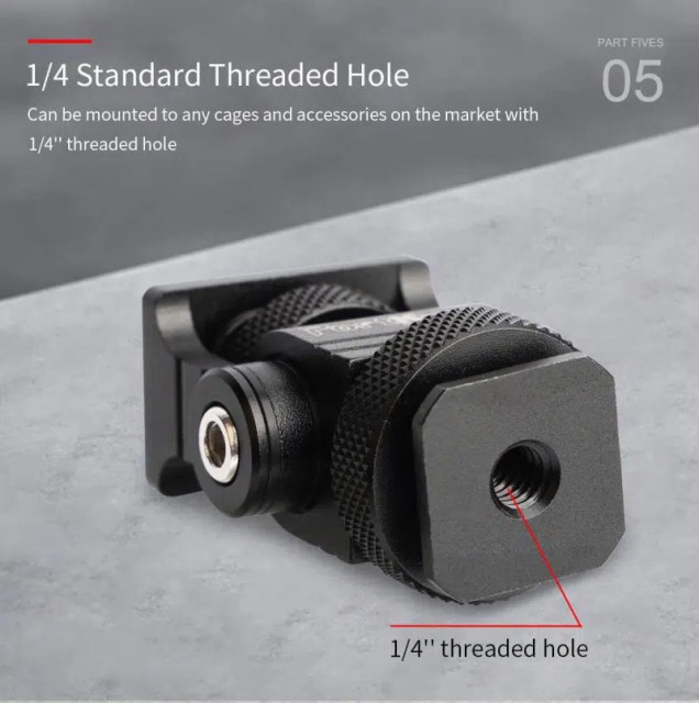 Die Standard 1/4" Gewindebohrung kann an alle auf dem Markt befindlichen Käfige und Zubehörteile mit 1/4" Gewindebohrung montiert werden