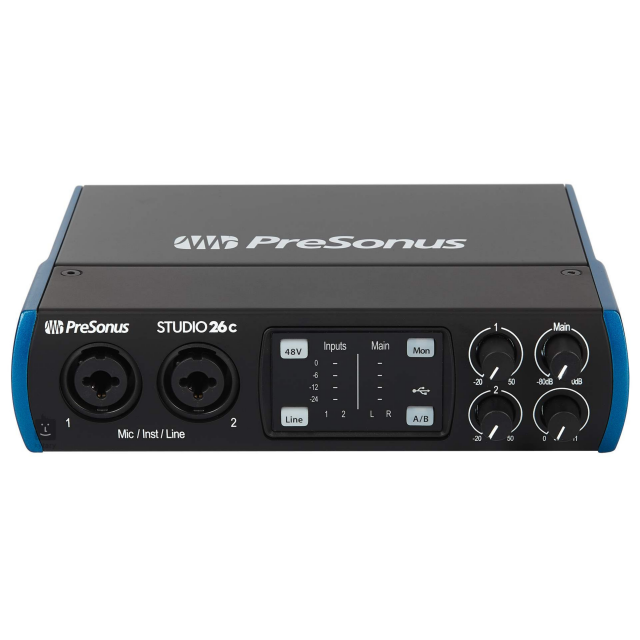 Das Studio 26c wurde speziell für die Bedürfnisse von DJs und Elektronikmusikern entwickelt und bietet eine überragende Klangqualität mit professionellem Metering und flexiblen Monitoring-Optionen. Mit zwei makellosen PreSonus XMAX-L-Mikrofonvorverstärkern für die Aufnahme von Gesang und eigenen Samples, MIDI-Eingängen und Line-Eingängen für Ihre Lieblingssynthesizer sowie einer professionellen Eingangs- und Ausgangsmessung zur Überwachung der Aufnahme- und Leistungspegel bietet das Studio 26c eine erstaunliche Klangqualität in einem robusten, kompakten Design. Das Studio 26c Audio-Interface ist ein komplettes Aufnahmestudio und wird mit einer kostenlosen Lizenz der preisgekrönten Studio One® Artist-Musikproduktionssoftware von PreSonus geliefert, sodass Sie sofort mit der Produktion beginnen können.