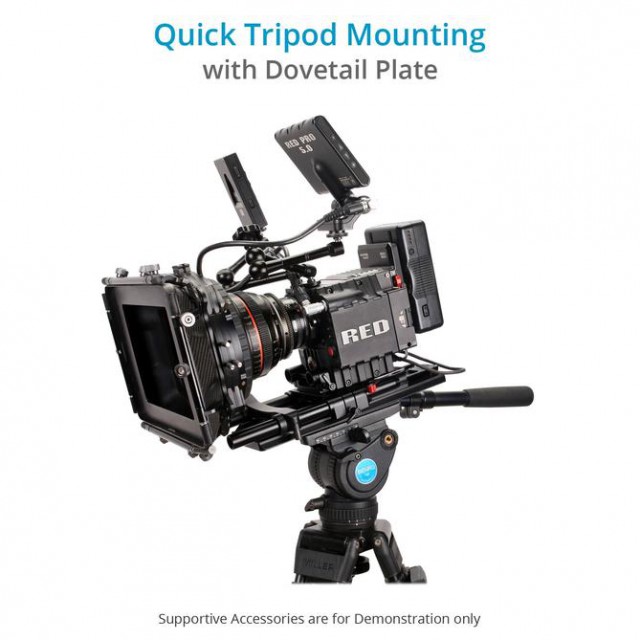 Sie können jede Kamera an dieser vielseitigen Basisplatte befestigen, ob schwere Kameras wie die ALEXA oder leichte Kameras wie die Sony F5.