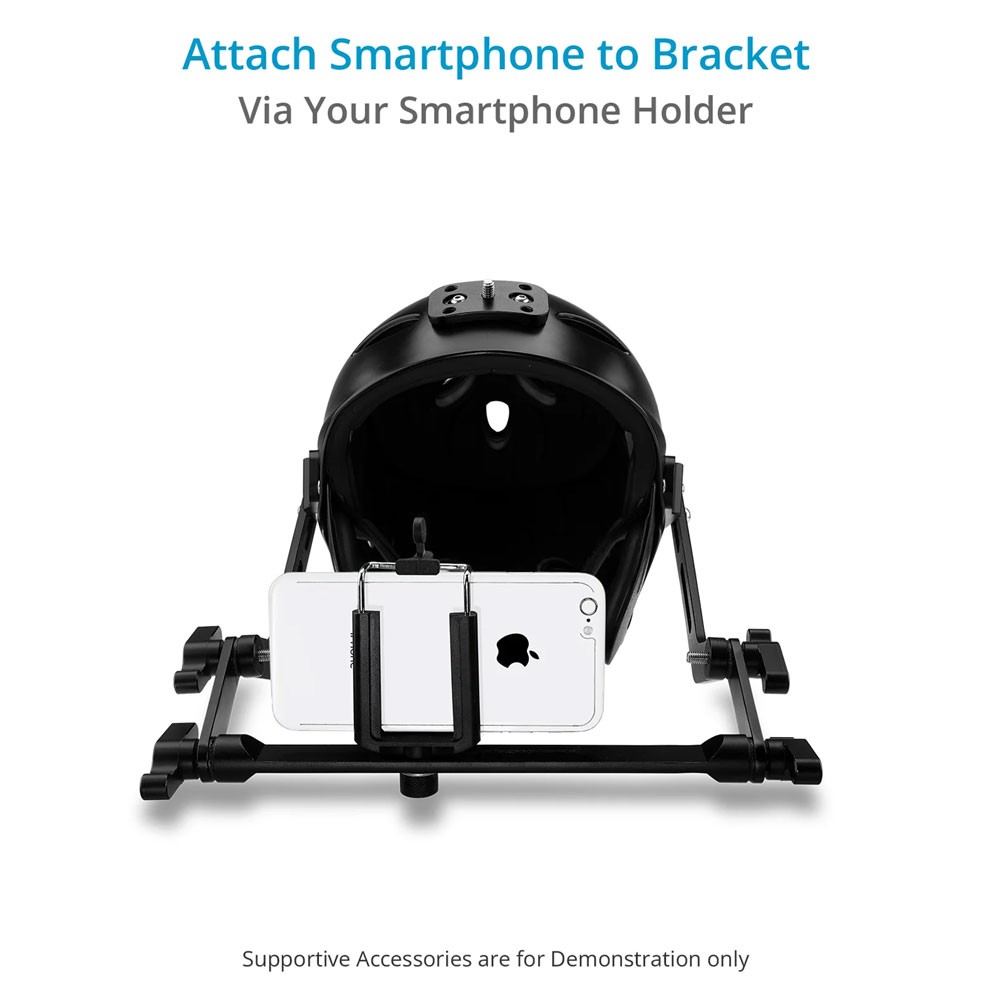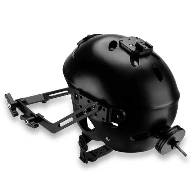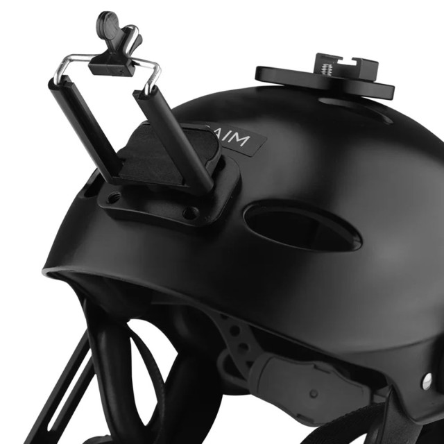 Er ist mit einer Kamerahalterung ausgestattet, die über zwei verstellbare Knöpfe auf beiden Seiten verfügt, um die Kamera sicher zu befestigen und im besten POV-Aufnahmewinkel zu positionieren.