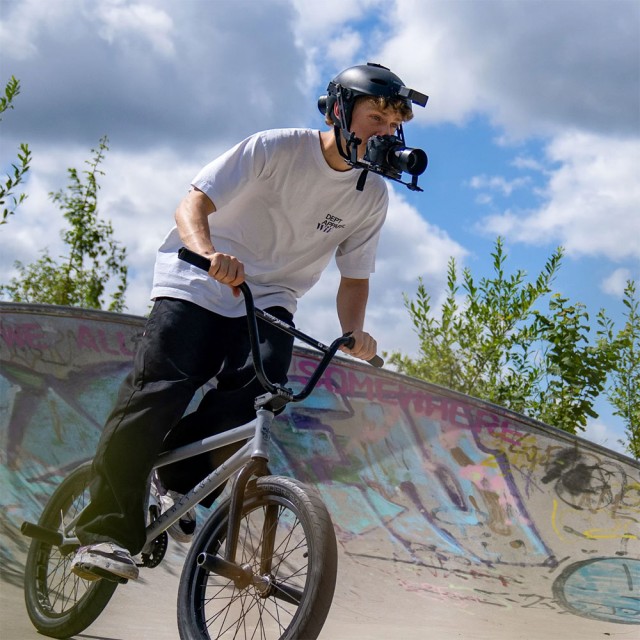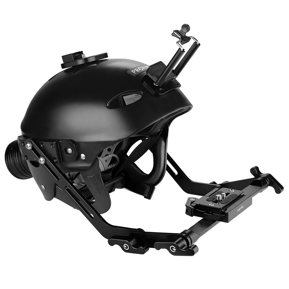 Meistern Sie die Kunst der subjektiven Kamera und der „Point of View Shot“ mit dem Proaim Cam Surfer Helmet Rig, das mit einer professionellen DSLR-Kamera beeindruckende und stilvolle POV-Aufnahmen liefert.