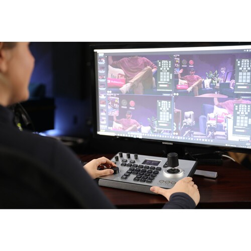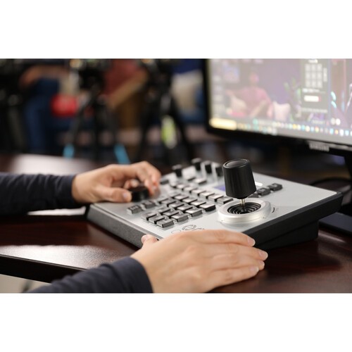 Der Joystick-Controller PT-JOY-G4 ermöglicht die intuitive Steuerung von bis zu 255 Kameras über IP oder bis zu sieben Kameras über serielle Schnittstellen in Echtzeit und unterstützt die Protokolle VISCA, VISCA-over-IP, Pelco-P, Pelco-D und ONVIF. Er bietet präzise Einstellungen für Schwenken, Neigen, Zoomen, Blende und Fokus sowie Weißabgleich und Belichtungssteuerung und verfügt über neun Schnellzugriff-Voreinstellungen für schnelles Umschalten. Die hintergrundbeleuchteten Tasten, das LCD-Display und die PoE-Fähigkeit des Controllers machen ihn ideal für Umgebungen mit schlechten Lichtverhältnissen oder komplexe Produktionsumgebungen. Zusammen bietet dieses Paket eine flexible, bedienerfreundliche Lösung für die Übertragung und das Streaming mit mehreren Kameras.