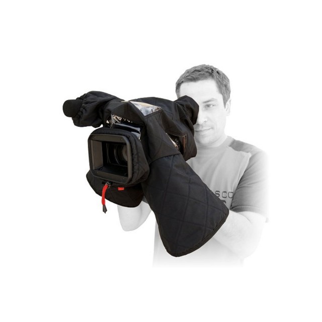 Universal-Thermo-Regenschutzhüllen sind zum Schutz von Camcordern vor Schnee, Regen und plötzlichen Temperaturschwankungen konzipiert. Sie bestehen aus wasserdichtem Gewebe, das mit einem dünnen Thermoschaumstoff gefüttert ist, sowie aus glattem, klarem PVC, das gegen hohe und niedrige Temperaturen beständig ist. Die Konstruktion ermöglicht dem Bediener einen einfachen Zugriff auf alle Funktionen des Camcorders.