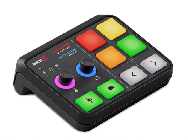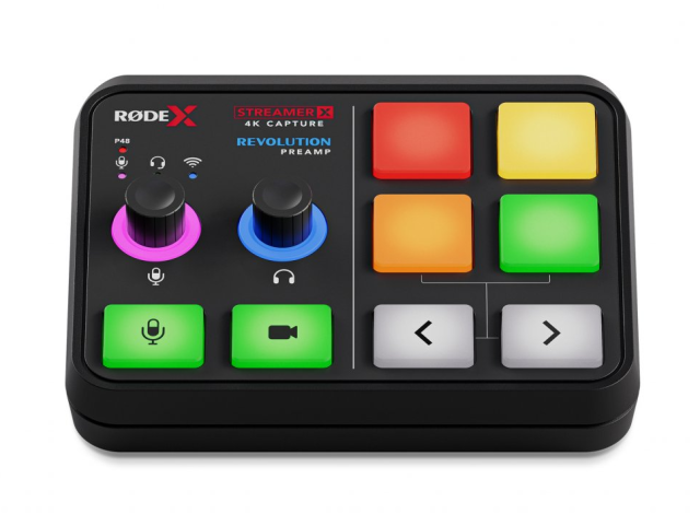 Der RØDE Streamer X ist eine professionelle All-in-One-Audio/Video-Konsole, die eine Videokarte und ein Sound-Interface in einem hochentwickelten Bedienfeld vereint. Er bietet 4K30-Video und 4K60-Pass-Through über HDMI, Unterstützung für variable Bildwiederholraten, einen Revolution Preamp™-Vorverstärker in Studioqualität mit Neutrik®-Kombistecker, eine interne APHEX®-DSP-Einheit, einen kombinierten XLR/TRS-Eingang für Mikrofone und Instrumente, einen 3,5-mm-TRS-Eingang für den Anschluss von Kopfhörern, einen 6.3 mm TRS-Kopfhörerausgang, integrierter Funkempfänger für RØDE IV-Funkgeräte (einschließlich Wireless GO II und Wireless ME), zwei USB-C-Schnittstellen für den Anschluss an zwei Computer oder Mobilgeräte, vier SMART Pads zum Auslösen von Sounds, Audio-FX-Effekten und anderen Computer