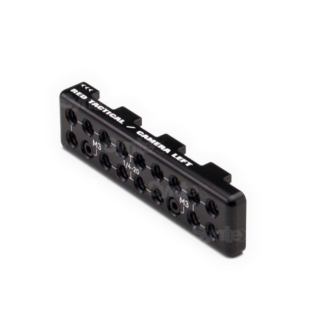 Mit dem DSMC TACTICAL LEFT ADAPTOR können Sie die DSMC TACTICAL PLATE oder Rippen an der linken Seite Ihrer Kamerakonfiguration befestigen. Das gelieferte Produkt kann leicht von der Abbildung abweichen. EPIC/SCARLET DRAGON, EPIC/SCARLET M-X kompatibel.