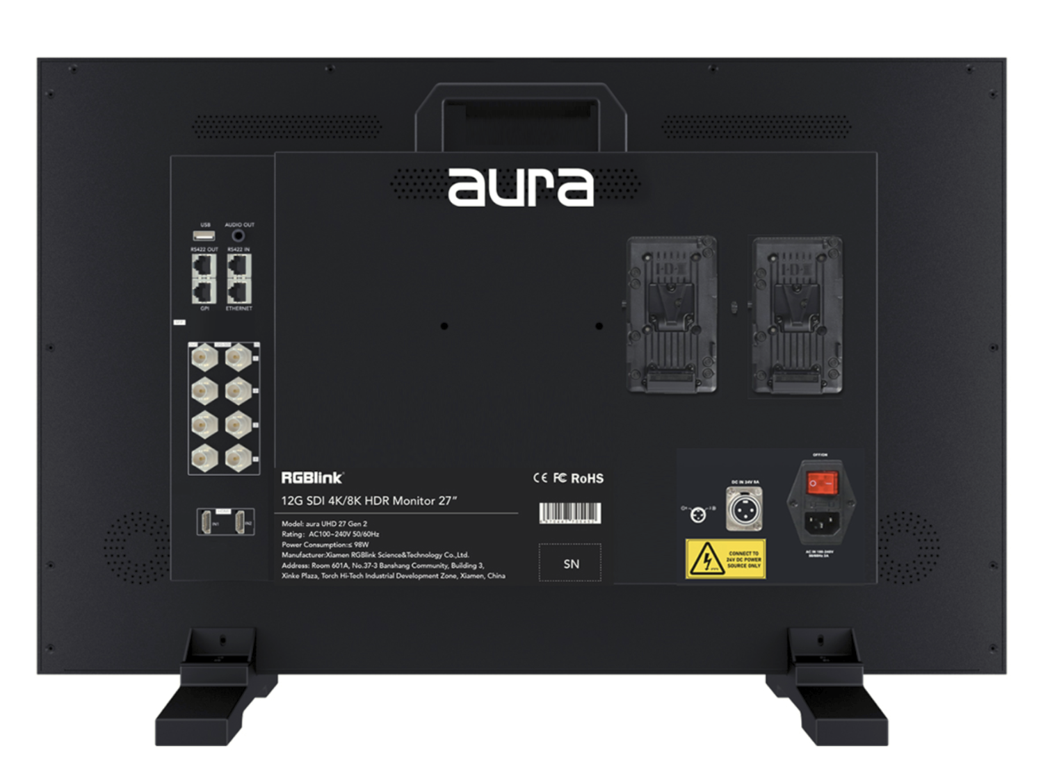 Der RGBlink Aura UHD Studio 27 (Gen 2) ist ein 27-Zoll-4K-HDR-Monitor in Broadcast-Qualität, der für professionelle Videoproduktion, Postproduktion und Studio-Workflows entwickelt wurde. Mit vier 12G-SDI-Monitoring-Anschlüssen, Thunderbolt™-Konnektivität für direkte Videovorschauen in Anwendungen, 100 % DCI-P3-Farbraum und hochpräziser 3D-LUT-Unterstützung bietet er fortschrittliche Tools für präzises HDR-Monitoring und Color Grading.