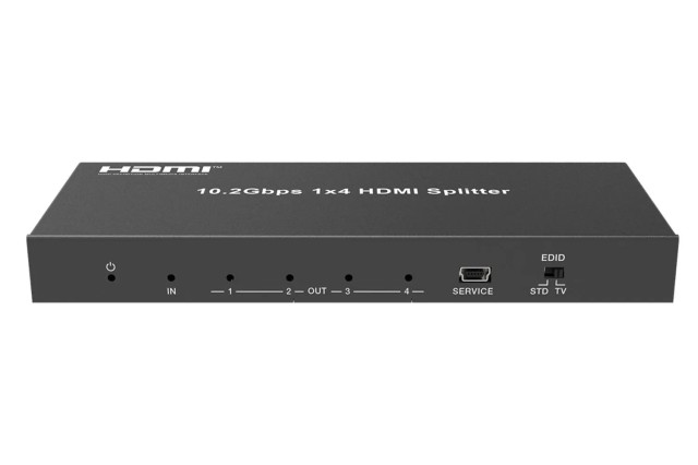 Der RGBlink DXP H0104 ist ein kompakter und leistungsstarker 1×4 HDMI 2.0-Verteilungsverstärker, der für professionelle AV- und UHD-Anwendungen entwickelt wurde. Er unterstützt eine 4K-Auflösung von bis zu 4096×2160@60Hz, HDR, Deep Color und HDCP 2.2 und verteilt eine einzelne HDMI-Quelle zuverlässig auf vier Displays mit makelloser Bildqualität und flexibler EDID-Verwaltung.