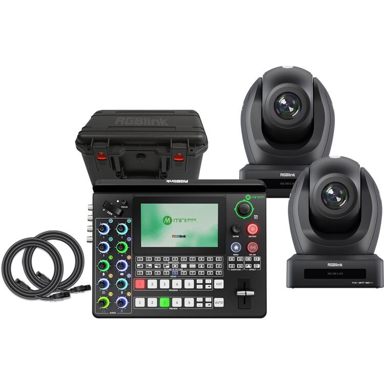 Das RGBlink mini-edge SDI mit 2 vue 4K 20X PTZ-Bundle ist eine komplette, tragbare Live-Produktionslösung, die einen professionellen 10-Kanal-Videoswitcher mit zwei KI-fähigen PTZ-Kameras kombiniert. Dieses Bundle wurde für Rundfunk, Streaming, Bildung und Veranstaltungen entwickelt und bietet leistungsstarkes HDMI/SDI-Switching, PTZ-Steuerung, Multi-Plattform-Streaming und Videoaufnahmen in Studioqualität in einem robusten Hartschalenkoffer-System.