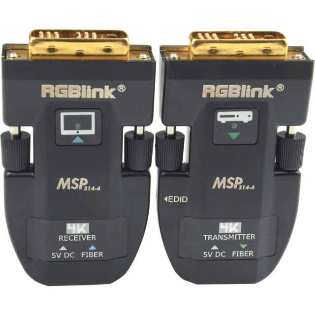 Der RGBlink MSP 314-4 ist ein kompaktes Glasfaser-DVI-Extender-Set (TX & RX), das hochauflösende Videos über Single-Mode-Glasfaser bis zu 2000 Meter weit überträgt. Mit Unterstützung für WUXGA, HDMI 1.4 (4Kx2K@30Hz), EDID-Speicherung und EMI-Resistenz eignet es sich perfekt für tragbare AV-Setups, Konferenzräume und professionelle Installationen, die eine zuverlässige DVI-Verlängerung über große Entfernungen erfordern.