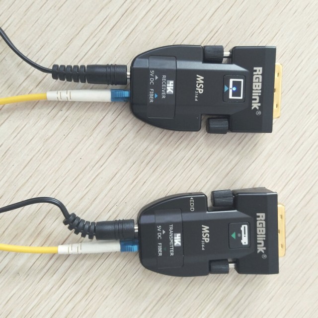 Der RGBlink MSP 314-4 ist ein vielseitiges DVI-über-Glasfaser-Extender-System, mit dem Sie hochwertige Videosignale über große Entfernungen mit minimalen Störungen übertragen können. Die kompakten Sender- und Empfängereinheiten verfügen über integrierte LC-Glasfaseranschlüsse und unterstützen Auflösungen bis zu WUXGA (1920×1200@60Hz) und HDMI 1.4 (4Kx2K@30Hz). Mit Singlemode-Glasfaser können Videos bis zu 2000 Meter weit übertragen werden, während Multimode-Glasfaser Entfernungen bis zu 300 Meter unterstützt.