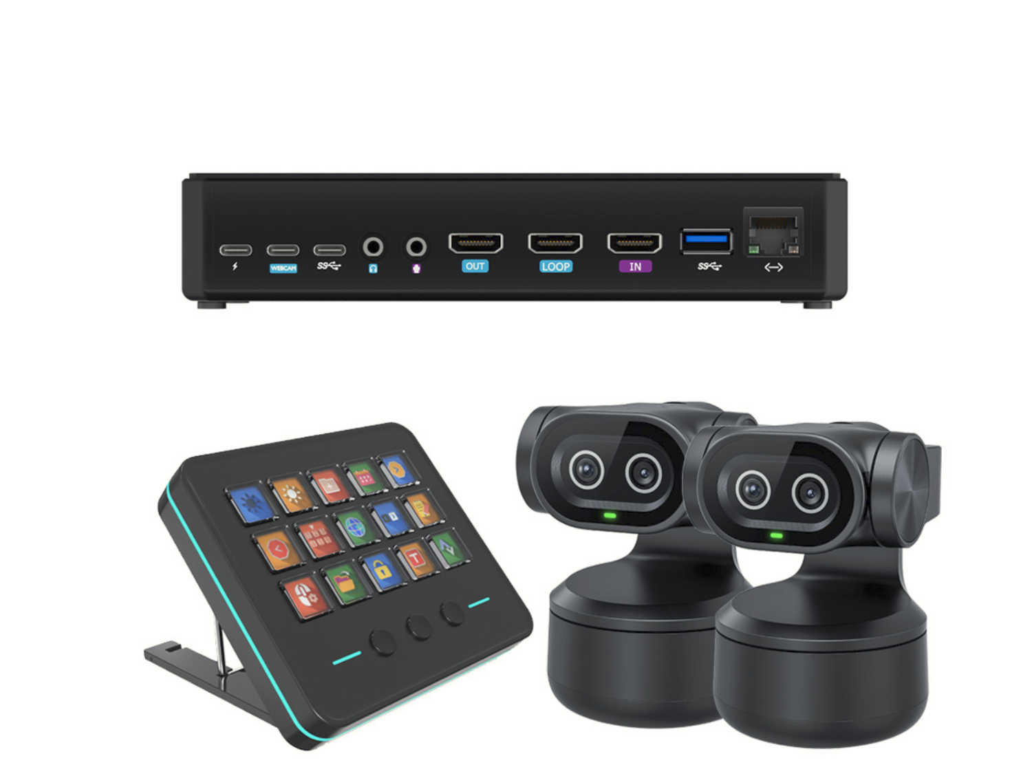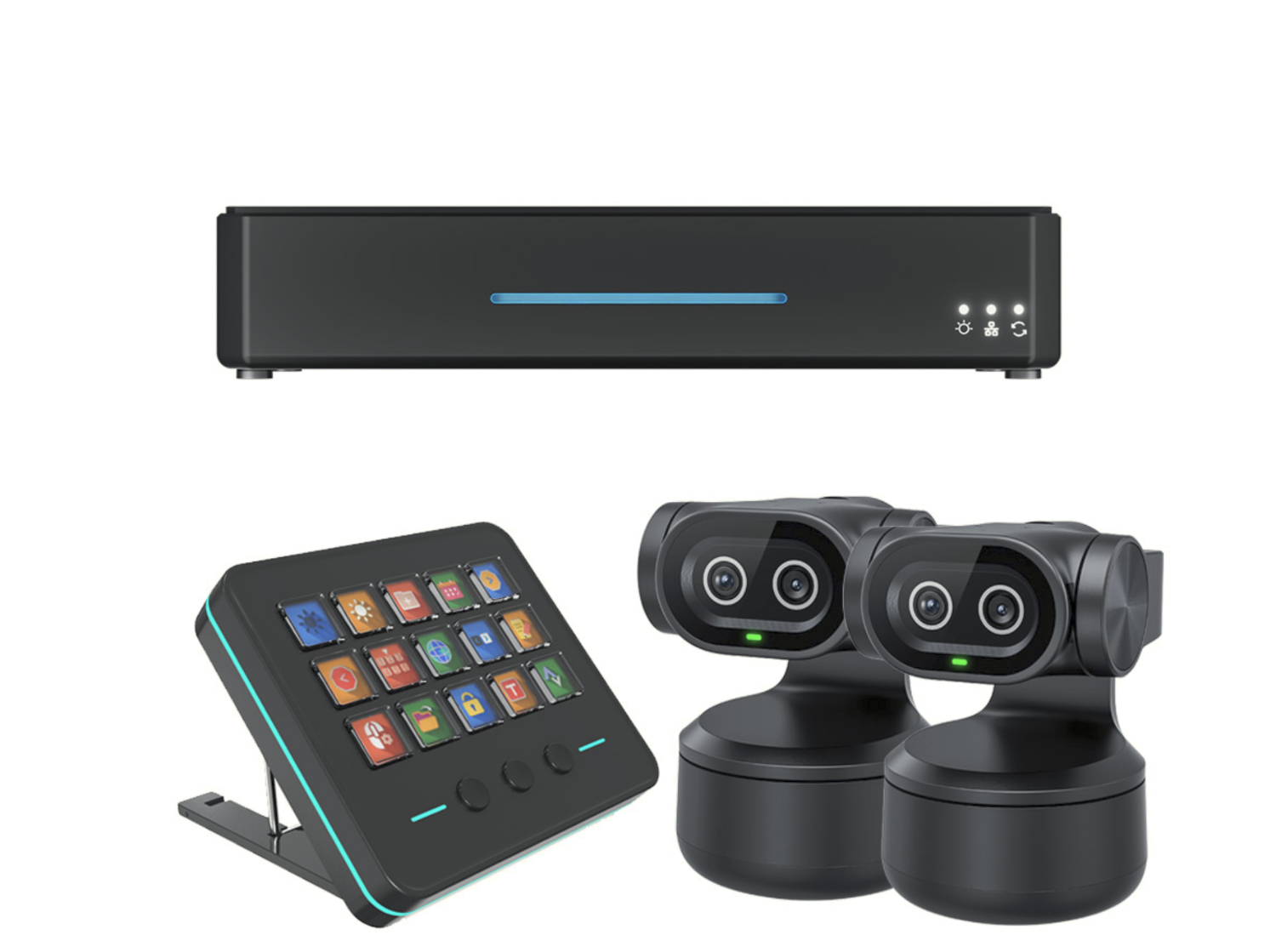 • Enthaltene Komponenten: streamZ Smart Streaming Hub, streamZ Deck USB-Bedienfeld, 2× tinyZ AI PTZ-Kameras