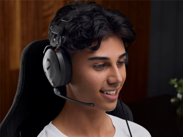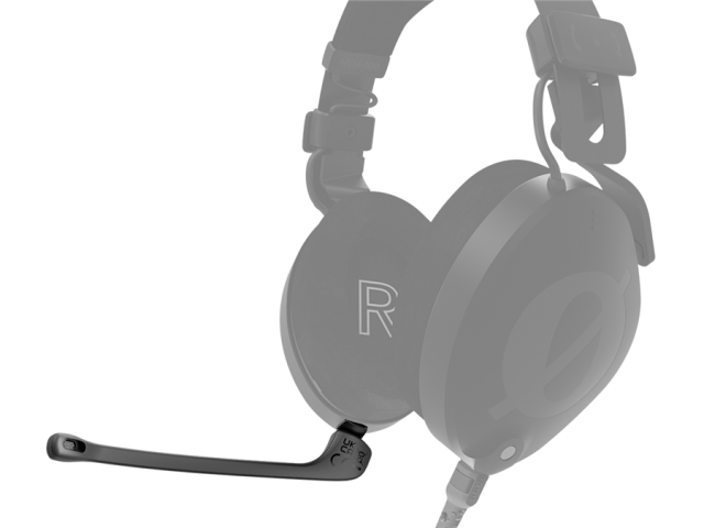 Das Mikrofon befindet sich an einem kurzen ergonomischen Arm und kann entsprechend der Position des Sprechers positioniert werden. Es wird über einen Standard-TRRS-3,5-mm-Stecker an das Headset angeschlossen und ist durch das FITLOK™-System gegen Herausfallen gesichert.