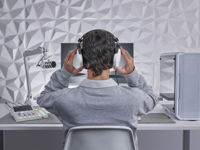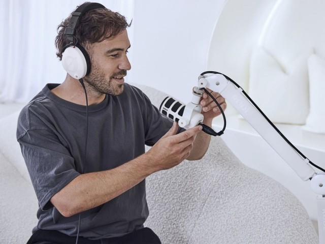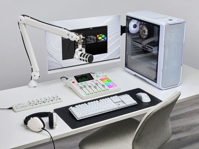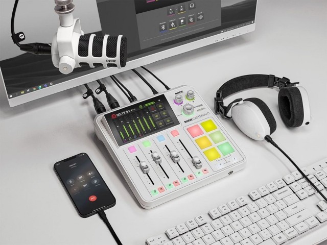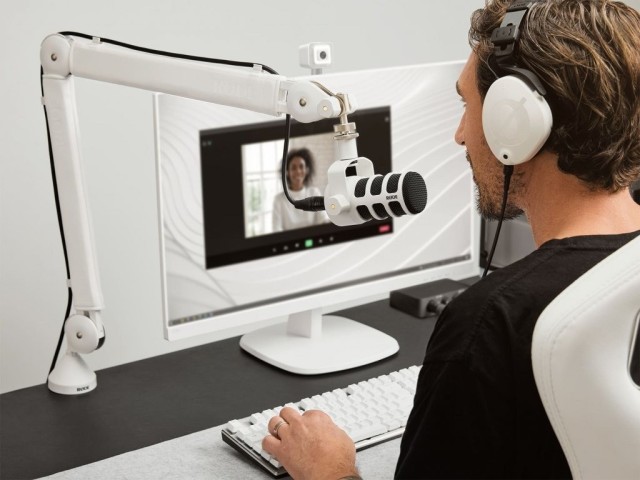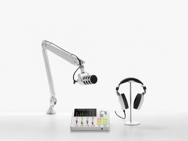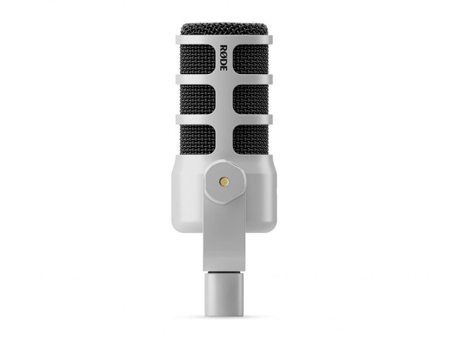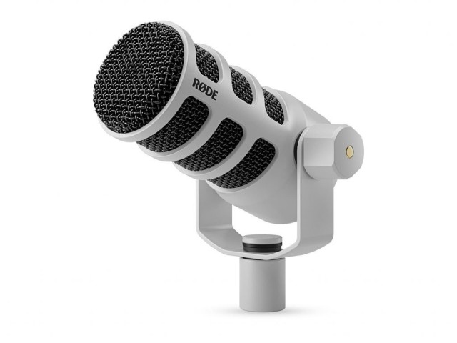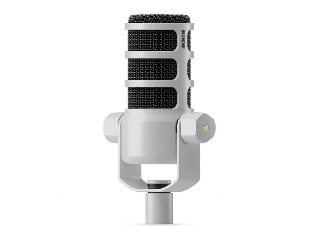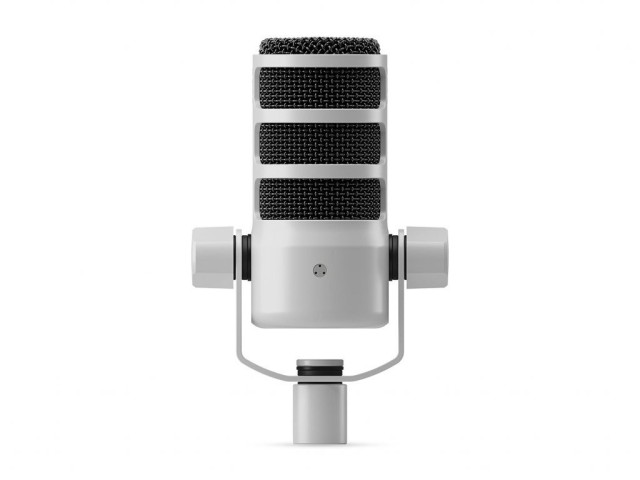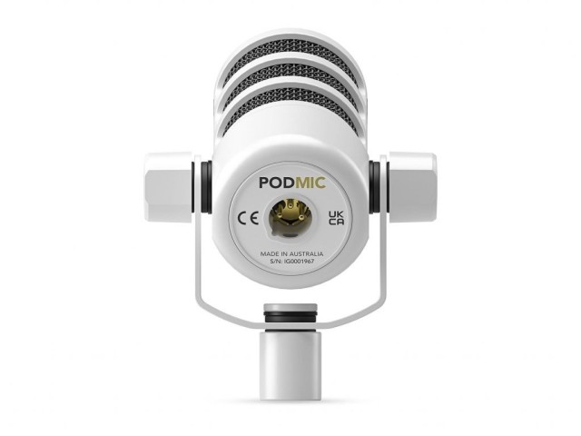 DasPodMic (weiß) ist ein dynamisches Mikrofon mit Broadcast-Qualität, das für Rundfunk und Podcasting optimiert ist. Es hat einen satten, ausgewogenen Klang, einen internen Pop-Filter, um Klatschen (Luftstöße) zu eliminieren, und einen cleveren Shockmount, um Vibrationen zu reduzieren. Weiße Farbgebung.