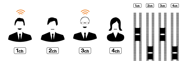 Die Auto-Mixing-Funktion sorgt bei Konferenzen für die richtige Mischung für mehrere Podiumsteilnehmer, indem sie die Pegel für mehrere Audioquellen automatisch anpasst, so dass sich der AV-Operator auf die Videoumschaltung konzentrieren kann. Es kann eine kanalspezifische Gewichtung eingestellt werden, die dem Moderator oder dem vorrangigen Audiokanal einen höheren Lautstärkepegel zuweist.