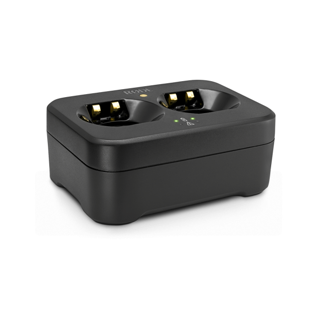 RØDE RS-1 ist eine Ladestation, mit der zwei Gerätefür die Mikrofone RØDE Interview PRO, TX-M2 und LB-1 aufgeladen werdenkönnen.