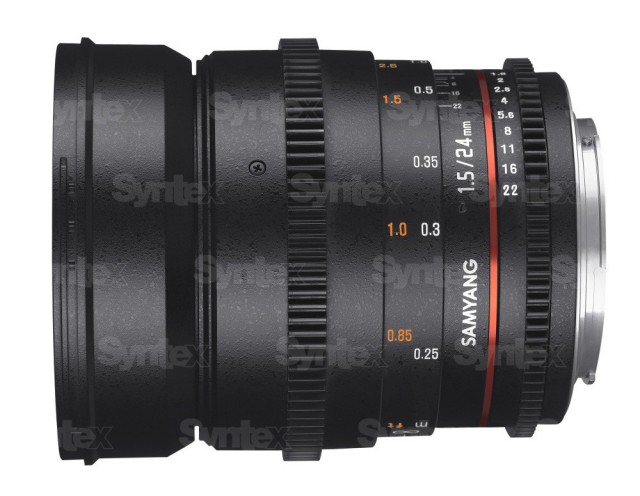 Objektiv Samyang 24mm T1.5 VDSLR II vor Sony E-Mount.