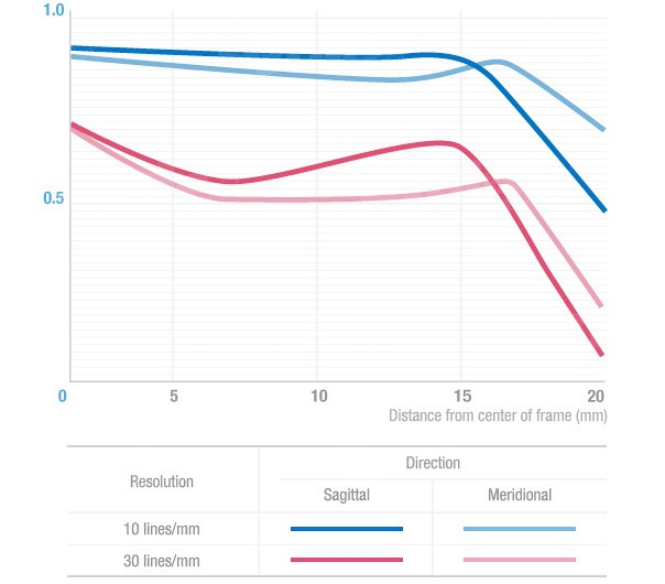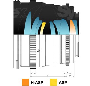 Die Mindestfokussierentfernung von 50 mm beträgt 1,5'. Die Innenfokussierung minimiert den Effekt der Linsenatmung und sorgt für einen gleichmäßigeren Blickwinkel beim Einstellen der Schärfe. Das Objektiv besteht aus 9 Elementen in 6 Gruppen, darunter ein asphärisches Element und ein asphärisches Hybridelement zur Reduzierung der Aberration. Darüber hinaus verbessert die mehrschichtige Linsenvergütung die Lichtdurchlässigkeit und reduziert Streulicht und Geisterbilder. Der Durchmesser des Filtergewindes beträgt 77 mm.