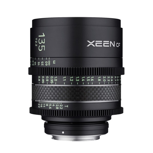 Das Samyang Xeen CF 135mm T2.2 ist ein kompaktes professionelles Vollformat-Weitwinkelobjektiv mit manuellem Fokus, bei dem der Objektivtubus aus Kohlefaser (leichter und stärker als Metall) gefertigt ist. Das Objektiv unterstützt 8K- und Vollformat-Bildsensoren, die in den neuesten Filmkameras installiert sind, und verfügt über größere Blenden- und Fokus-Zahnringe (mit abgerundeten Kanten) sowie Leuchtskalen mit neuer, deutlich sichtbarer Schrift. Erhältlich für Canon EF / PL / Sony E Mount.