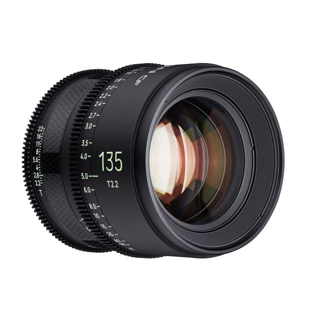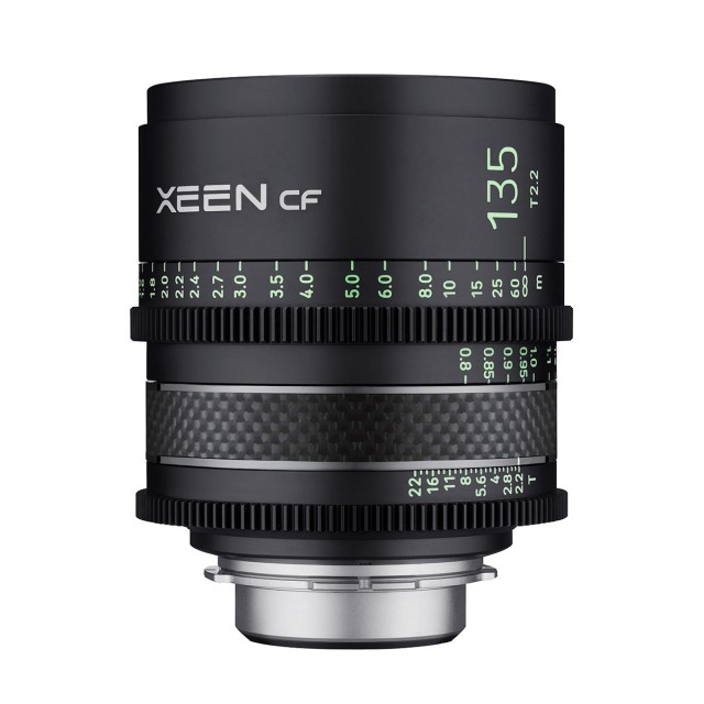 Das manuelle Filmobjektiv Samyang Xeen CF 135mm T2.2 bietet eine hohe optische Auflösung (für moderne 4K/6K/8K FF-Sensoren), eine Konstruktion mit Karbonelementen zur Gewichtsreduzierung bei hoher Festigkeit, gezackte Blenden- und Fokusringe (200°-Bereich), X-Vergütung zur Unterdrückung von Streulicht und leicht ablesbare Leuchtmarkierungen. Erhältlich in den Ausführungen EF, FE und PL.