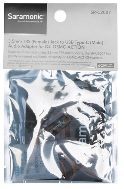 Das Saramonic SR-C2007 ist ein kompaktes 2,4-Zoll-Audioadapterkabel (6 cm), das für DJI Osmo Action-Kameras optimiert ist. Es verfügt über einen vergoldeten 3,5-mm-TRS-Buchsenanschluss an einem Ende und einen USB-Typ-C-Steckeranschluss am anderen Ende, um die direkte Audioaufnahme von externen Mikrofonen, drahtlosen Empfängern, Rekordern oder Mischpulten…