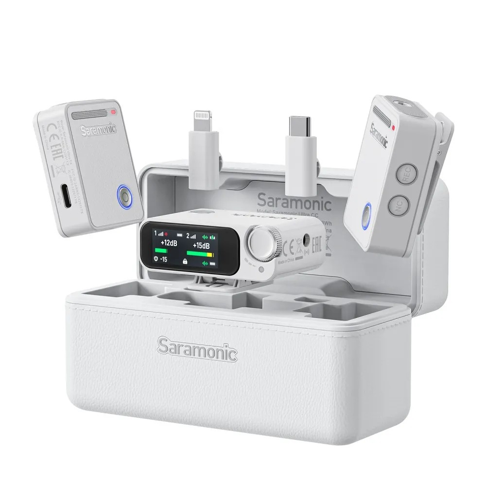Das Saramonic Ultra White ist ein hochwertiges kabelloses Clip-On-Mikrofonsystem für zwei Personen mit Lavalier-Mikrofonen, 32-Bit-Float-Aufnahme und Timecode für präzise Audiosynchronisation. Es eignet sich ideal für Filmemacher, Content-Ersteller, Live-Streamer, Podcaster und mobile Journalisten und bietet universelle Kompatibilität mit Kameras, Smartphones, Tablets und Computern sowie IPX5-Wasserfestigkeit und eine Akkulaufzeit von bis zu 18 Stunden.