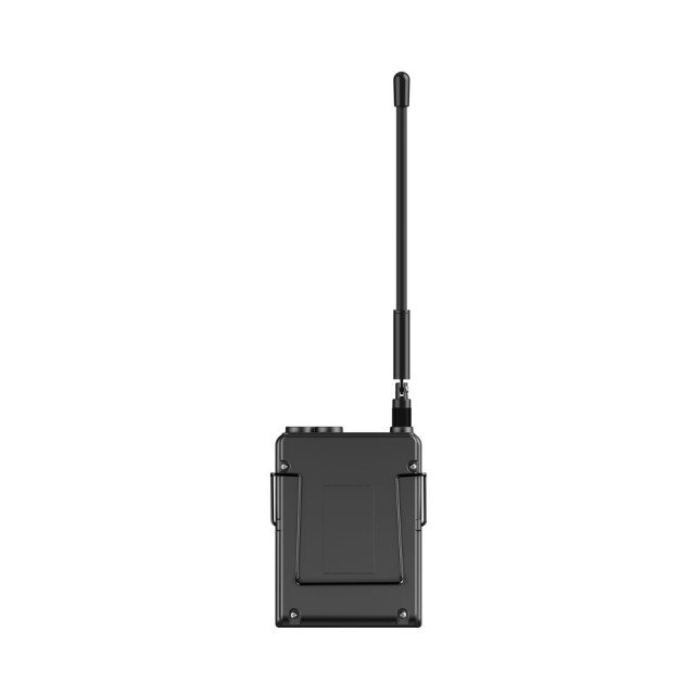 Der Saramonic TX9s ist ein Taschensender mit Befestigungsmöglichkeiten. Es verfügt über ein leicht ablesbares OLED-Display, eine abnehmbare Antenne und einen eingebauten, wiederaufladbaren Akku. Die Line- und Mikrofoneingänge ermöglichen den Empfang von Audiosignalen über das mitgelieferte 3,5-mm-Ansteckmikrofon oder andere Geräte mit einer Line-Buchse. Ein kurzer Druck auf den Schalter schaltet das Mikrofon zwischen den Aufnahmen stumm. Eine Sperrfunktion verhindert versehentliches Stummschalten oder Abschalten des Senders.