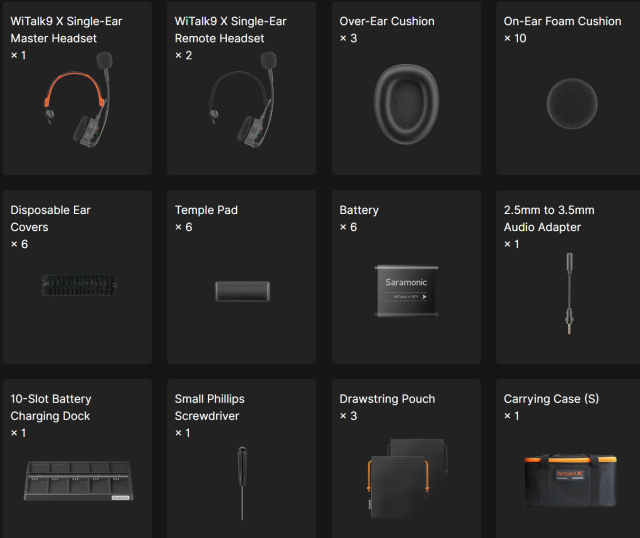 Das Saramonic WiTalk9 X 3-Personen-Ein-Ohr-Funk-Vollduplex-Intercom-System (Katalognummer WiTalk9 X-3S) ist eine kompakte, hub-freie, DECT-basierte Kommunikationslösung, die im 1,9-GHz-Frequenzband arbeitet und für professionelle Teams entwickelt wurde, die eine zuverlässige, freihändige Sprachkommunikation in anspruchsvollen Umgebungen wie Live-Veranstaltungen, Filmproduktionen und Außeneinsätzen benötigen.[1][9][10]