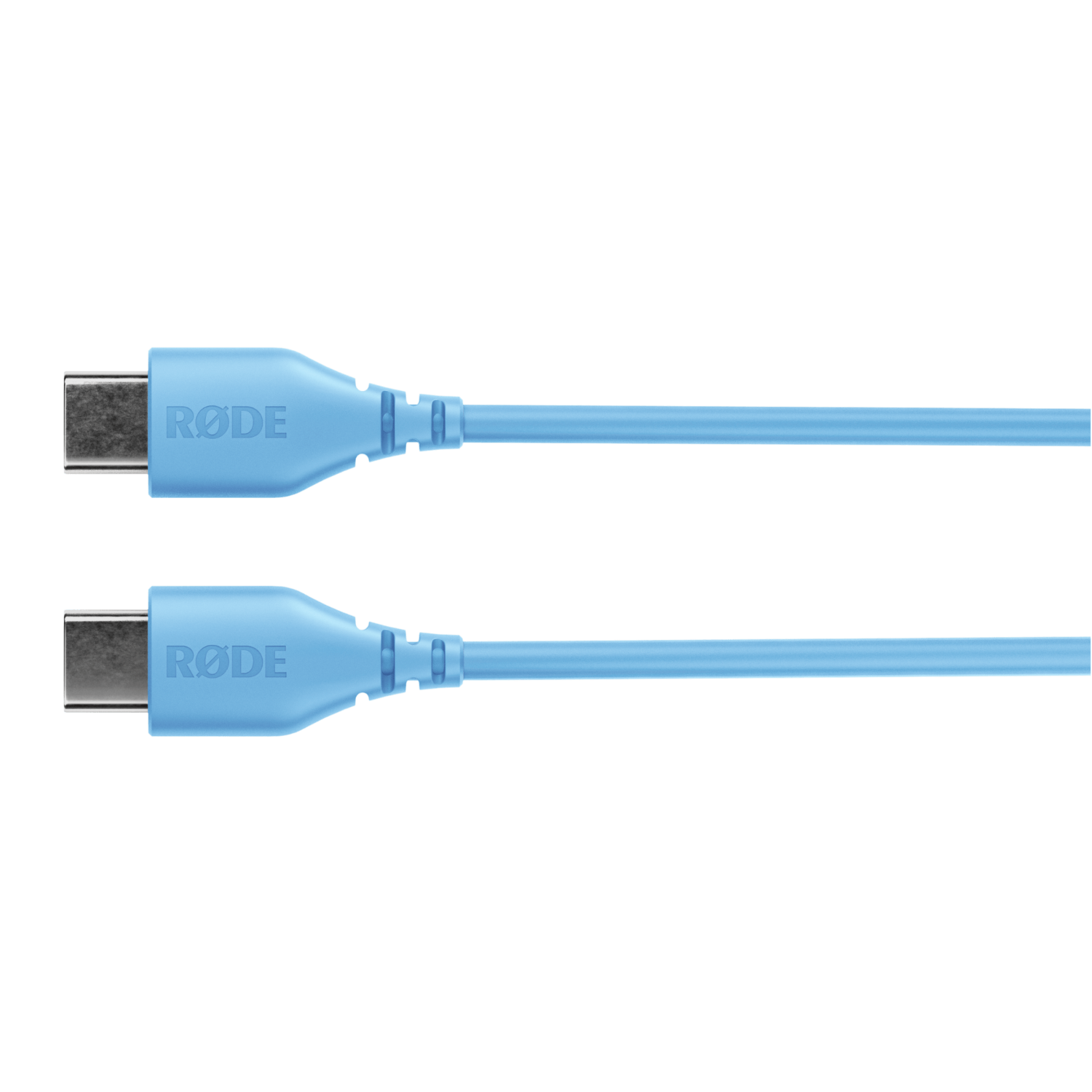 Das RODE SC22 ist ein hochwertiges USB-C-zu-USB-C-Kabel mit einer Länge von 30 cm zum Anschluss von USB-C-Mikrofonen und anderen Geräten an Computer, Telefone und Tablets. Farbe: hellblau.