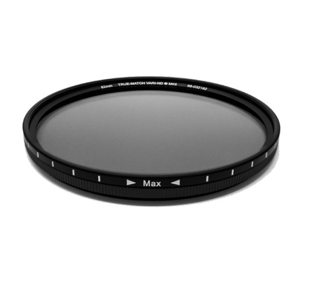 Der True-Match Vari-ND MKII Variable Neutral Density Filter von Schneider ist ein solider variabler Neutraldichtefilter mit einem einstellbaren Filterfaktor von 0,45 bis 3,45, der eine Reduzierung von 1,5 bis 11,5 Blendenstufen ermöglicht. Dieser 82-mm-Filter verdunkelt den gesamten Bildbereich und ermöglicht so größere Blendenöffnungen oder längere Belichtungszeiten als normalerweise erforderlich. Die variable Dichte lässt sich durch Drehen des vorderen Filterrings leicht steuern, sodass die zusätzlich erforderliche Belichtungszeit bestimmt werden kann. Durch Verlangsamung der Belichtungszeit können die Bildunschärfe und das Bewegungsgefühl verstärkt werden, und durch Anpassen der Blende lässt sich die Schärfentiefe präziser steuern. Dies ist besonders nützlich bei Aufnahmen in hellem Sonnenlicht, wo lange Verschlusszeiten und große Blendenöffnungen sonst nicht möglich sind.