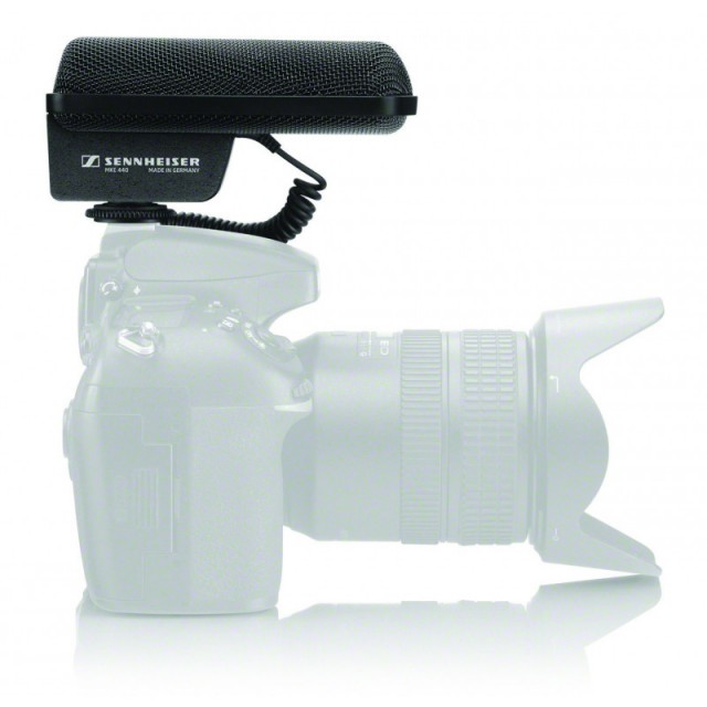 Das Stereo/Binaural-Mikrofon MKE 440 ist für Digitalkameras (D-SLR) und digitale Camcorder geeignet. Es nimmt den Ton mit zwei Richtmikrofonkapseln auf, die V-förmig angeordnet sind (V-Stereo). Im Gegensatz zu anderen Kamera-Stereomikrofonen nimmt es den Ton des aufgenommenen Bildes ohne störende Seiten- und Hintergrundgeräusche auf.