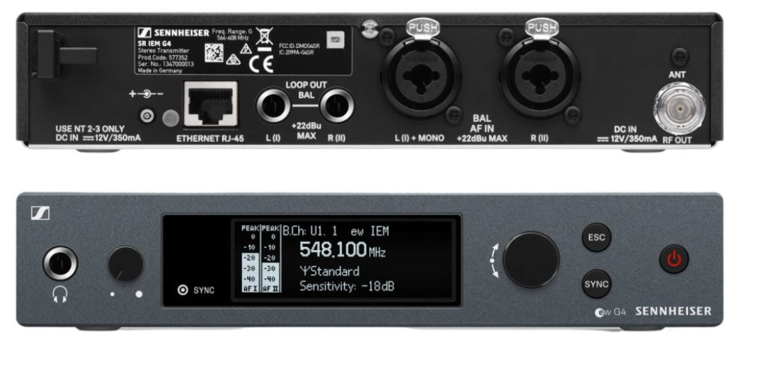 Der SR IEM G4 arbeitet im A-Frequenzband (516–558 MHz) und bietet 1680 abstimmbare UHF-Frequenzen, die in 20 Frequenzgruppen mit 16 Werksvoreinstellungen und einer vom Benutzer programmierbaren Gruppe für eine präzise Frequenzauswahl organisiert sind. Dies gewährleistet eine zuverlässige, störungsfreie Übertragung auch in überfüllten HF-Umgebungen.