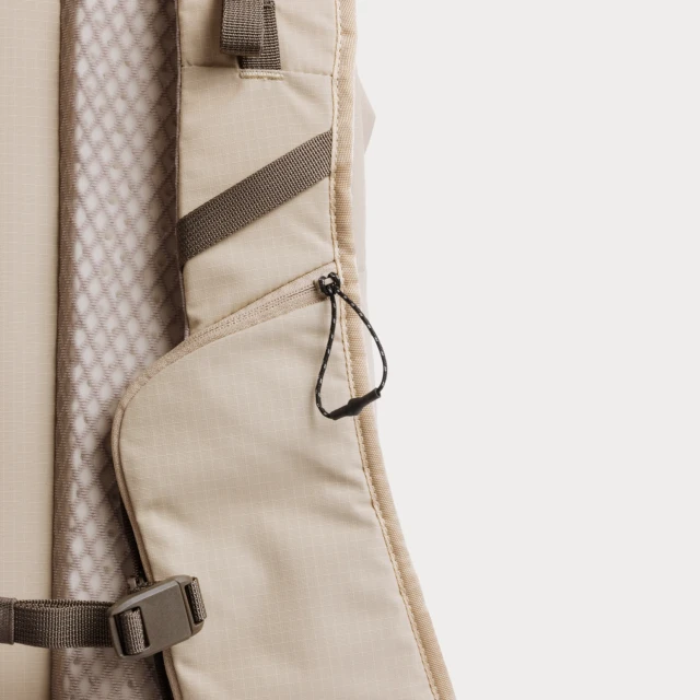 Das LightWeave™ Ripstop-Material mit doppelter PFAS-freier DWR-Beschichtung bietet wasserabweisenden Schutz. Eine magnetische Klappe leitet Wasser vom Frontreißverschluss ab und reduziert so das Eindringen von Wasser bei starkem Regen.