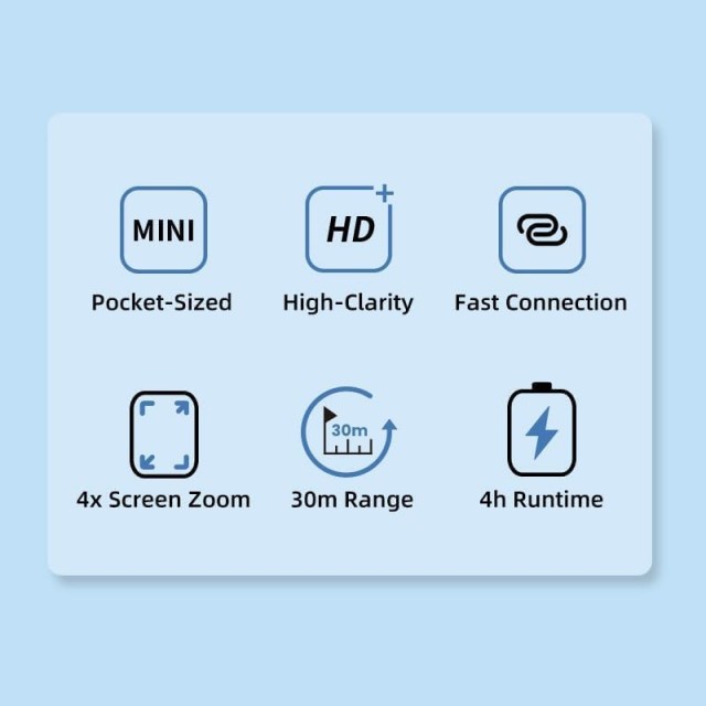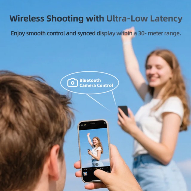 Die Bluetooth-Auslösersteuerung ermöglicht die Fernbedienung des iPhones aus einer Entfernung von bis zu 30 Metern, und der 1200-mAh-Akku sorgt für 4 Stunden Dauerbetrieb. Dank der magnetischen Befestigung lässt es sich leicht an Stativen, Halterungen oder anderen kreativen Aufbauten anbringen. Eine geringe Latenz von 60 ms sorgt für eine flüssige Videoüberwachung.