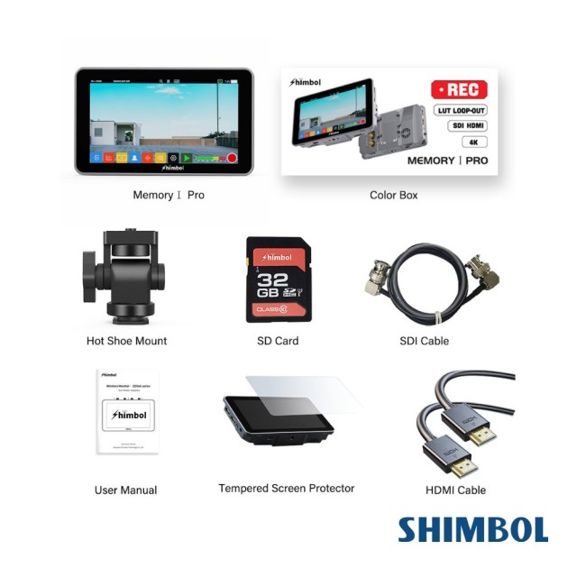 Der Shimbol Memory I Pro 5,5" HDMI & 3G-SDI Touchscreen Rekorder/Monitor wurde erheblich verbessert, einschließlich erweiterter Funktionen und einer neu gestalteten Benutzeroberfläche. Mit diesen Verbesserungen kann er nun Videos mit Auflösungen bis zu DCI 4K25 über HDMI oder 1080p60 über 3G-SDI aufzeichnen und anzeigen, während er gleichzeitig benutzerdefinierte 3D-LUTs für eine optimale Farbabstufung anwendet.