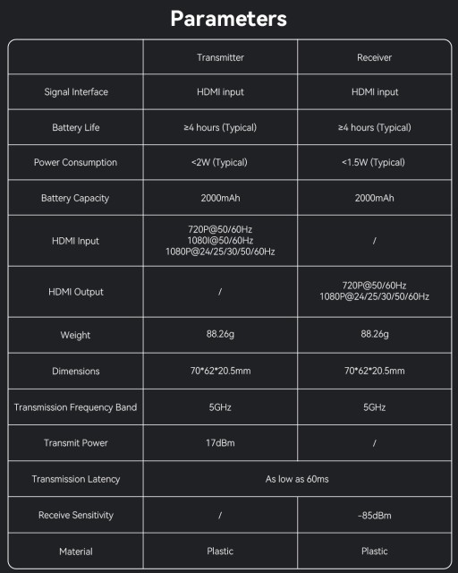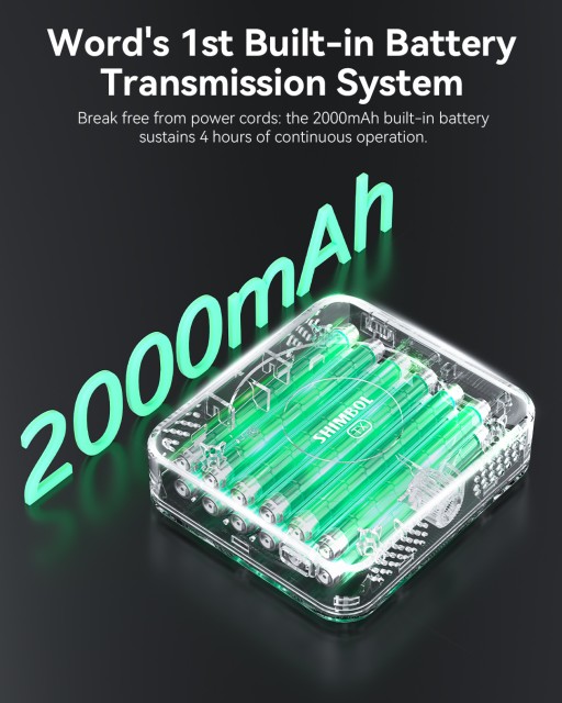 Befreien Sie sich für immer von Stromkabeln mit dem Shimbol TP Nano – dem weltweit ersten wirklich batteriebetriebenen drahtlosen Videoübertragungssystem für Smartphones, spiegellose Kameras und Action-Setups. Mit einem leistungsstarken integrierten Akku mit 2000 mAh ermöglicht es eine kontinuierliche FHD-1080p60-Übertragung mit kinoreifer Bildschärfe und einer extrem niedrigen Latenz von 60 ms, selbst bei einer Reichweite von 150 m. Adaptives automatisches Frequenzspringen sorgt für eine stabile, unterbrechungsfreie Verbindung in überfüllten HF-Umgebungen.