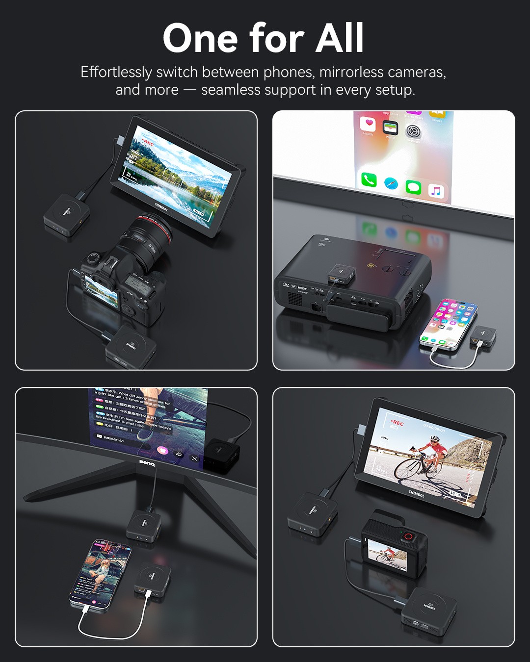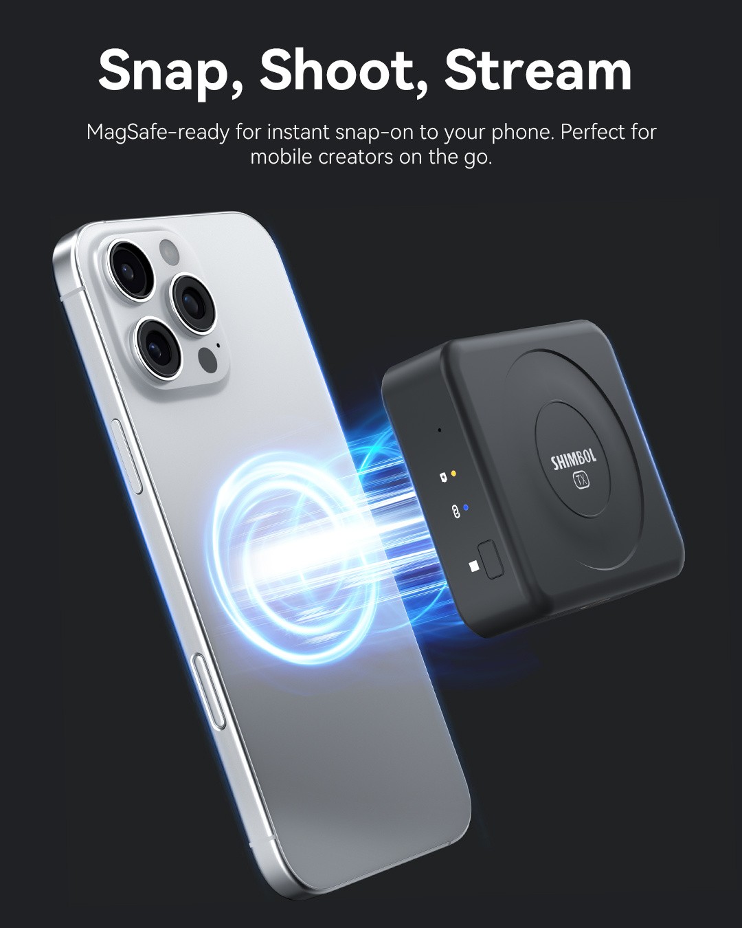 Shimbol TP Nano – Der weltweit erste batteriebetriebene drahtlose Videosender: Ultrakompakter integrierter Akku mit 2000 mAh für mehr als 4 Stunden kabellosen Betrieb, 150 m Reichweite mit extrem geringer Latenz von 60 ms, FHD 1080p60-Übertragung, MagSafe-kompatibler Aufsatz für Smartphones, HDMI-/USB-C-Eingänge, automatisches Frequenzspringen – perfekt für mobile Kreative, Gimbals, Drohnen und Run-and-Gun-Aufnahmen.