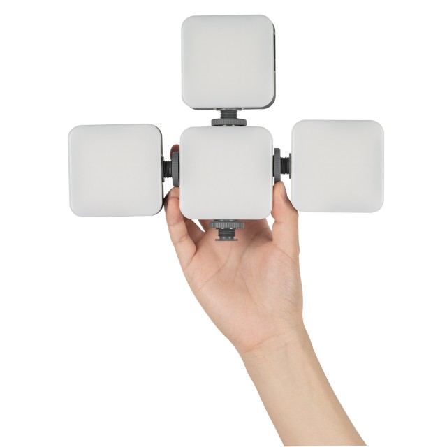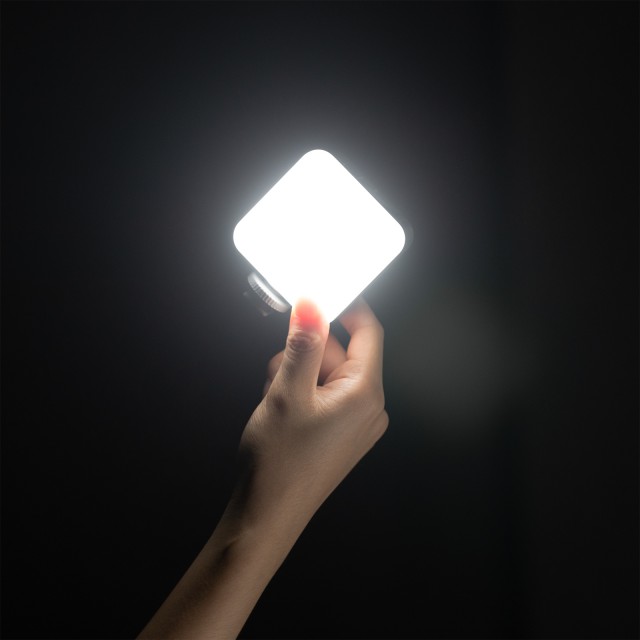 simorr P96 Video LED Light 3286 ist eine leichte, tragbare und elegante Mini-LED-Leuchte mit 0-100% Helligkeitsregelung, CRI95 und einer Farbtemperaturskala von 2700K bis 6500K. Drücken Sie die Ein-/Aus-Taste, um das Licht ein- oder auszuschalten, oder halten Sie sie lange gedrückt, um den Beleuchtungsmodus zu aktivieren (maximale Helligkeit). Sie können die Taste drücken und drehen, um die Farbtemperatur einzustellen, und dies erneut tun, um die Helligkeit einzustellen. Die Leuchte verfügt über einen integrierten 2200-mAh-Lithium-Ionen-Akku, der über das mitgelieferte USB-Typ-C-Ladekabel aufgeladen wird und eine Betriebszeit von 105 Minuten (maximale Helligkeit) bietet. Sie kann direkt an der Kamera und am Käfig über den Kaltschuhschlitz oder an der Kaltschuhhalterung an der Seite eines Kamerakäfigs befestigt werden.