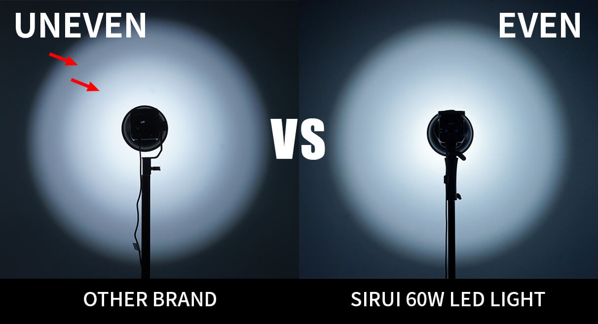 SIRUI hat das Design des C60/C60B optimiert, um die Kompatibilität mit dem Bowens-Anschluss zu erhöhen. In Verbindung mit dem mitgelieferten 55°-Reflektor gibt der C60/C60B ein helleres und weicheres Licht ab.