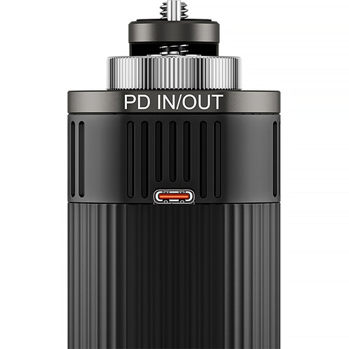 Der ZG-H90 Battery Grip Handle von Siuri ergänzt Ihr Video- und Foto-Lichtzubehör ganz einfach um den Komfort eines Handgriffs. Der eingebaute 88Wh 14,8V-Akku kann über die LED-Ladeanzeige überwacht und über das mitgelieferte USB-C-Ladekabel wieder aufgeladen werden. Die USB-C-PD- und D-Tap-Ausgangsanschlüsse erweitern die Kompatibilität und Vielseitigkeit des Geräts, so dass auch andere Dinge als Beleuchtungskörper am Set mit Strom versorgt werden können. Mit der 1/4"-20-Schraube können Sie eine Vielzahl von Geräten befestigen, während die Fixierstifte für zusätzliche Sicherheit sorgen und eine 1/4"-20-Gewindebohrung an der Unterseite für zusätzliches Zubehör Ihr Setup weiter an Ihre Bedürfnisse anpassen kann.